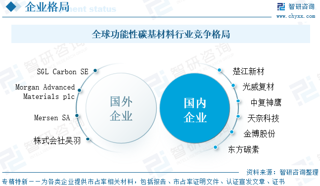 当前,全球功能性碳基材料市场竞争格局呈现出国际化与本土化并行发展的鲜明特征。以德国西格里、美国摩根先进材料、法国美尔森及日本吴羽株式会社为代表的国际行业巨头,凭借其在技术积累、规模化制造与高端产品性能等方面的长期优势,持续主导着全球高端市场。与此同时,以楚江新材、光威复材、中复神鹰、天奈科技、金博股份、东方碳素、宝武碳业、米格新材、亿达碳业等为代表的一批国内企业正快速崛起,通过持续的自主研发与工艺创新,不断推动产品性能与品质提升,逐步缩小与国际领先企业之间的技术差距。在此基础上,国内企业亦积极拓展海外市场,深度参与全球竞争,进一步加剧了功能性碳基材料行业在国际范围内的竞争强度。