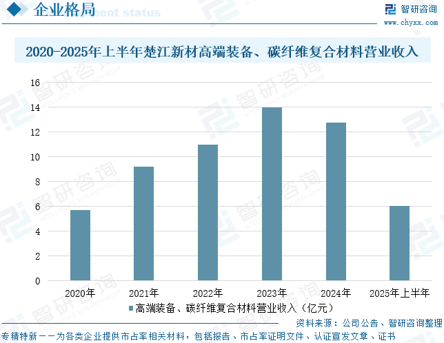 安徽楚江科技新材料股份有限公司专注于材料的研发与制造,致力成为极具竞争力的先进材料研发制造平台型公司,目前业务涵盖铜基新材料和军工碳材料两大板块,产品包括精密铜带、铜导体材料、铜合金线材、精密特钢、碳纤维复合材料和特种热工装备及新材料等六大品类。在高性能碳纤维复合材料及制品中,子公司天鸟高新专业从事碳纤维、芳纶纤维、石英纤维、碳化硅纤维、氧化铝纤维、氮化硅纤维等特种高性能纤维的应用研究及开发,是专业生产飞机碳刹车预制体、航天用碳/碳、碳/陶复合材料预制体、石英纤维预制体、航天热结构热防护材料、结构功能一体化材料、透波材料预制体以及各类高性能特种纤维织物、预浸料的国家航空航天重大工程配套企业。芜湖天鸟为天鸟高新全资子公司,专业研发、生产和销售碳/碳、碳/陶复合材料制品,产品包括热场复合材料,碳/碳、碳/陶刹车盘等,可应用于光伏、半导体、新能源汽车等领域。数据显示,2025年上半年,楚江新材高端装备、碳纤维复合材料营业收入为6.01亿元,同比下降9.62%。